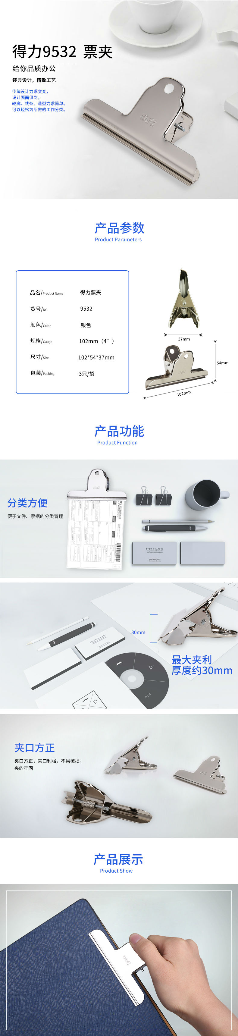 商品名称:得力9532-2﹟山形铁票夹102mm袋装(3只/包)