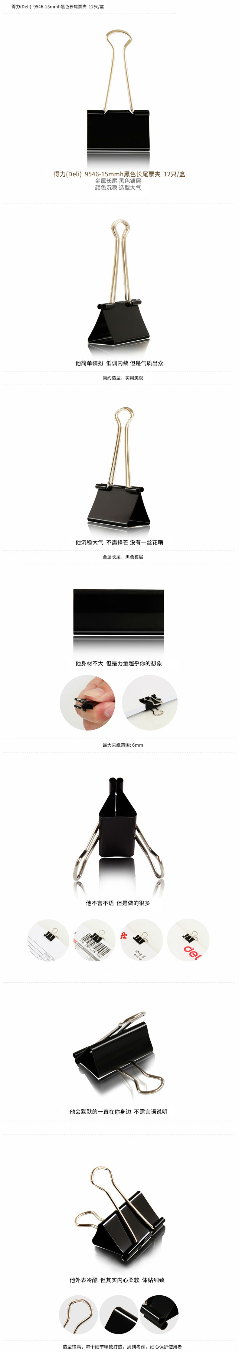 商品名称:得力9546黑色长尾票夹15mm筒装(黑)(12只/盒)