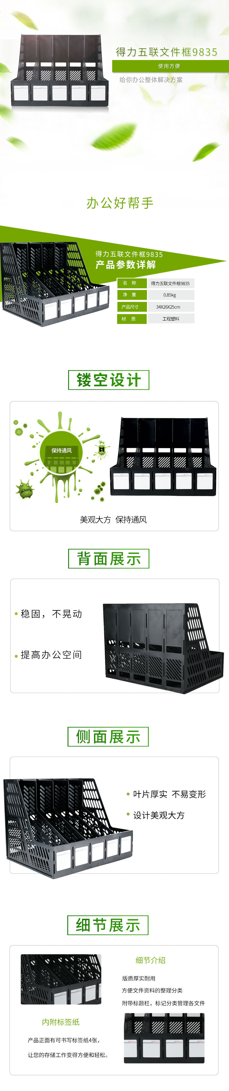 商品名称:得力9835五联文件框(黑)(只)
