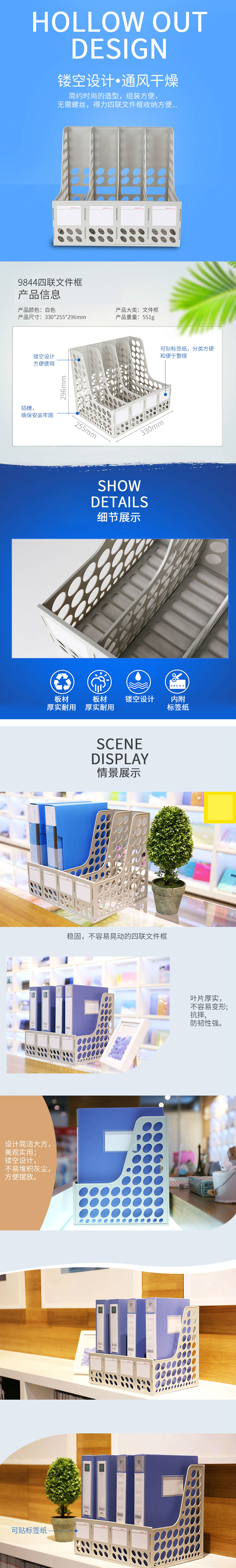 商品名称:得力9844四联文件框(灰白)(只)