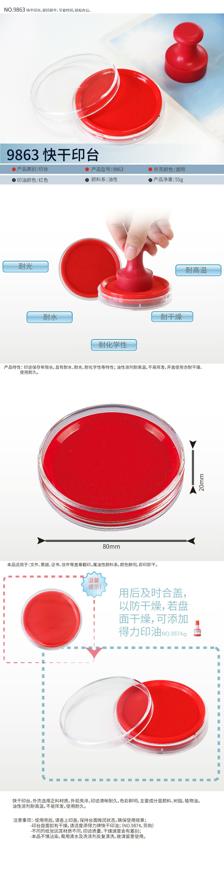 商品名称:得力9863快干印台(红)(只)