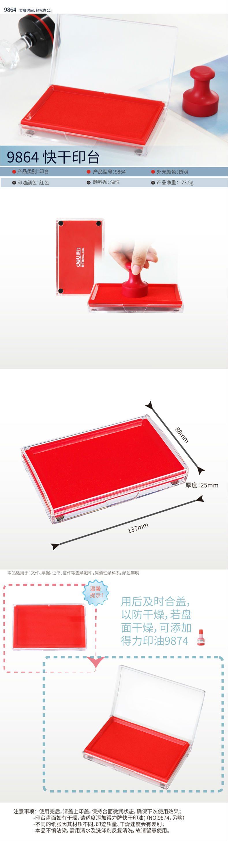 商品名称:得力9864快干印台(黑)(只)
