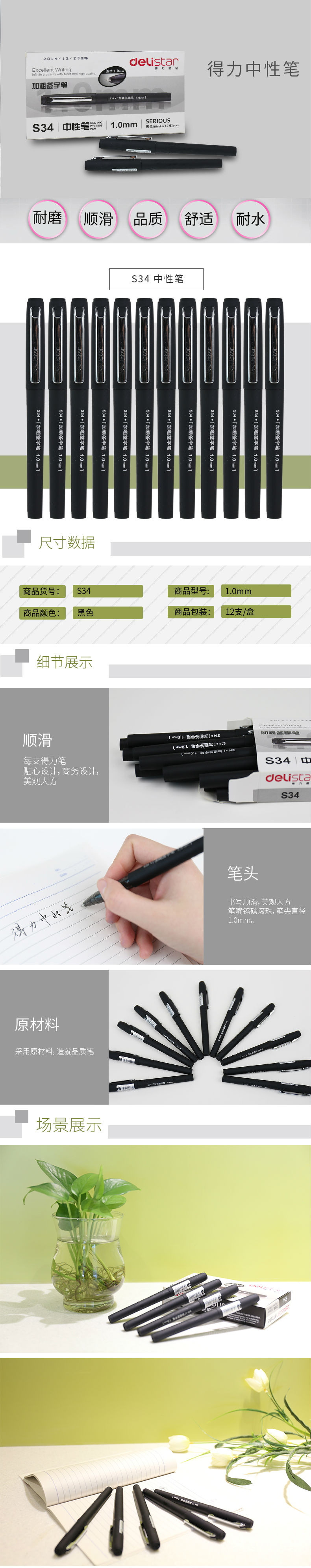 商品名称:得力S34中性笔1.0mm子弹头(黑)(支)