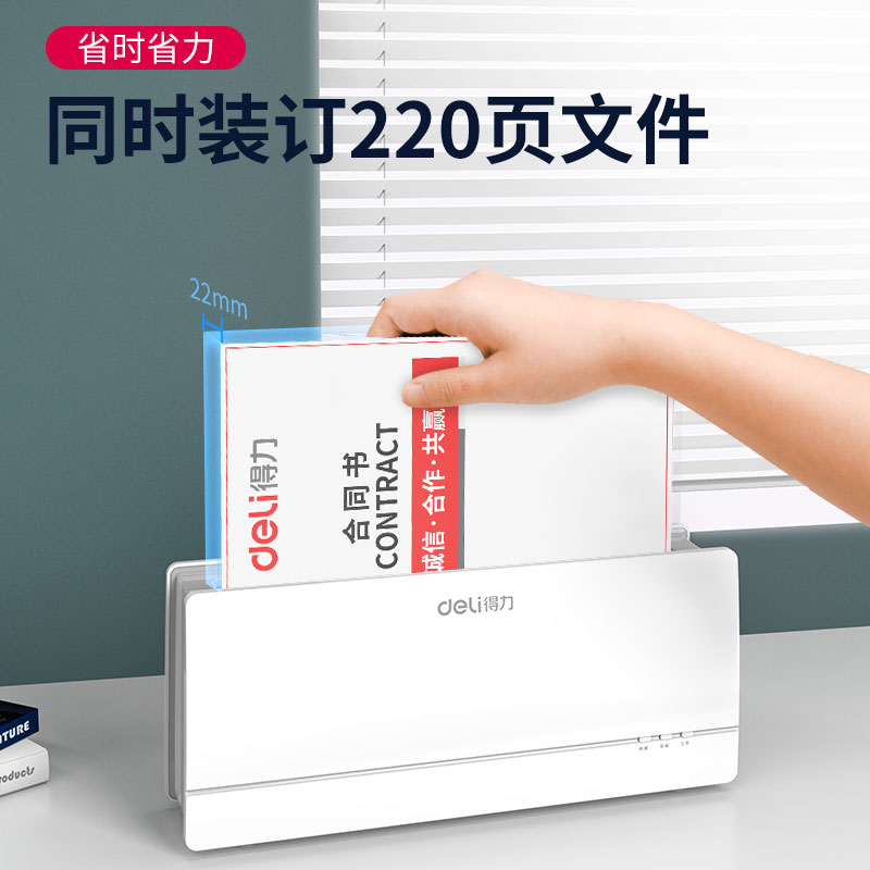 商品名称:得力(deli)210页热熔胶套财务凭证封装机 档案资料标书合同文件装订胶套机14672